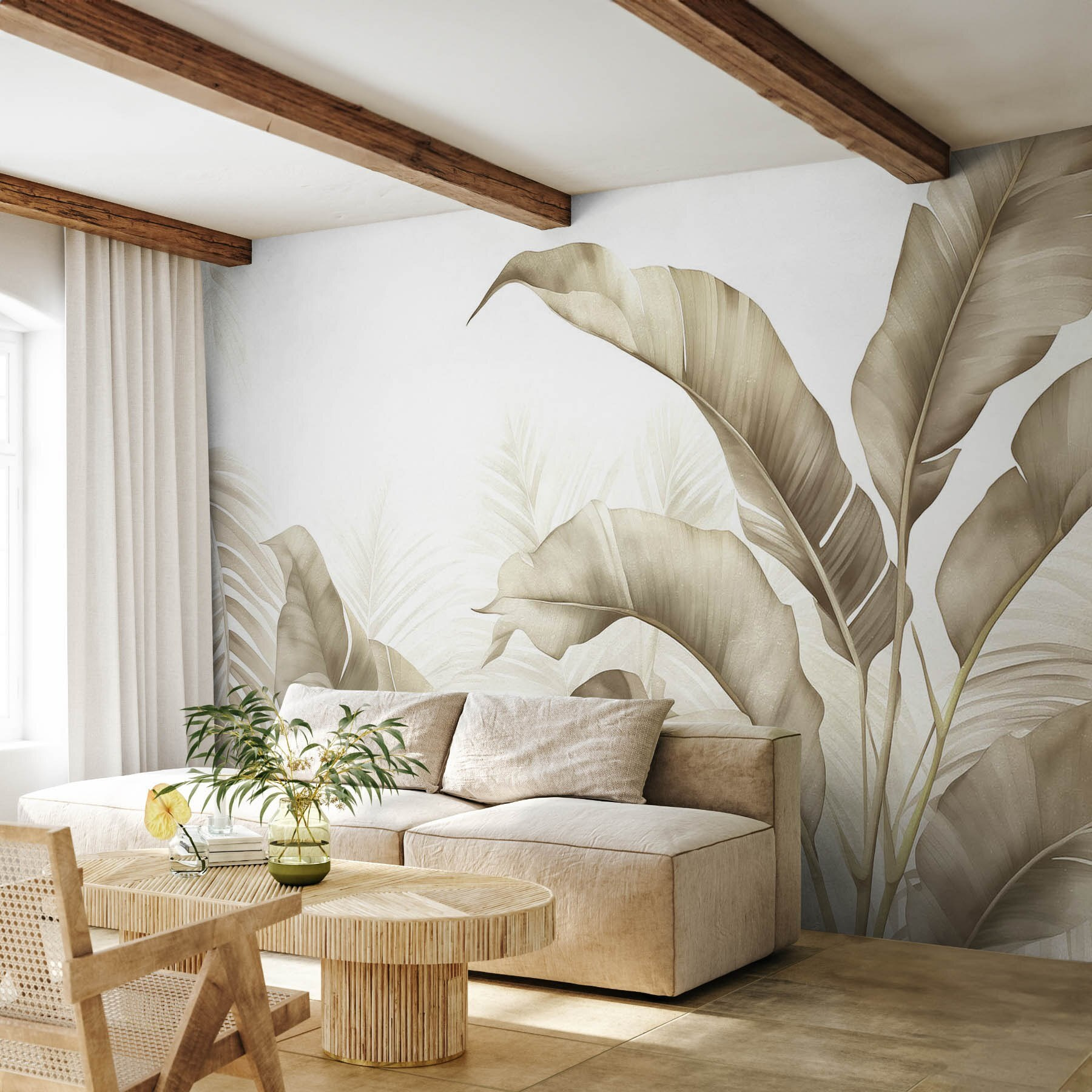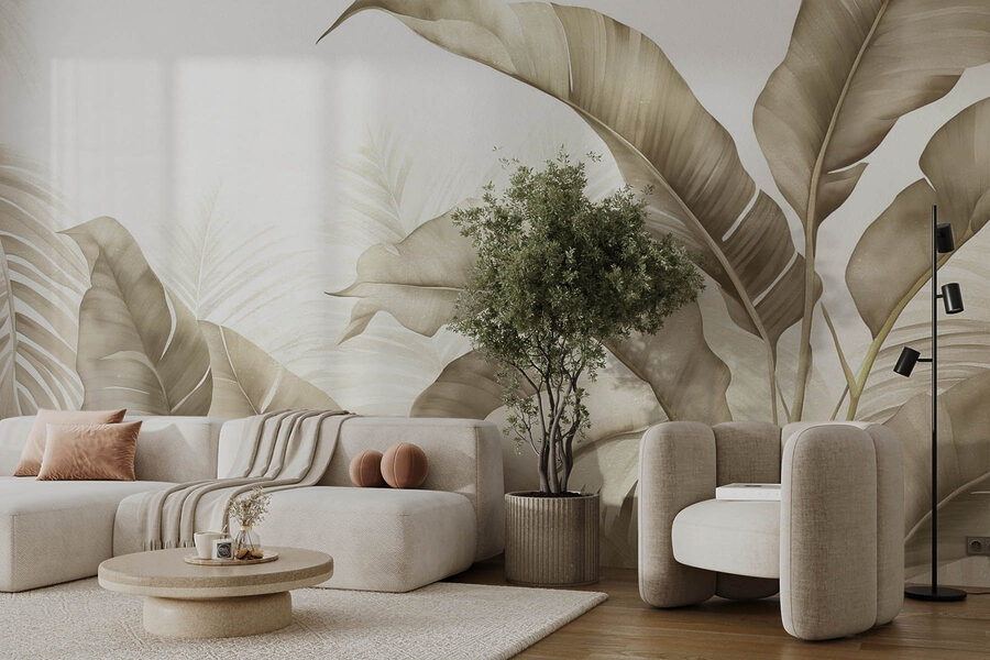 Vylepšite svoj priestor touto úžasnou fototapetou, ktorá predstavuje nádherný dizajn prírodných tónov a elegantných listov. Predstavte si, že vojdete do miestnosti, kde vás mäkká zelená a jemná hnedá zabalia do útulného objatia, takmer ako teplé objatie od prírody. Je ideálny na dni, keď snívate o tropickom úteku bez toho, aby ste museli opustiť domov. Bezproblémová zmes listov dodáva nádych sofistikovanosti, vďaka ktorej sa aj ten najmenší priestor bude cítiť ako svieža oáza. Premeňte nudnú stenu na miesto, kde sa bude dať rozprávať – hostia neodolajú a zastavia sa, aby ju obdivovali. Je to umenie? Je to príroda? Možno je to oboje!