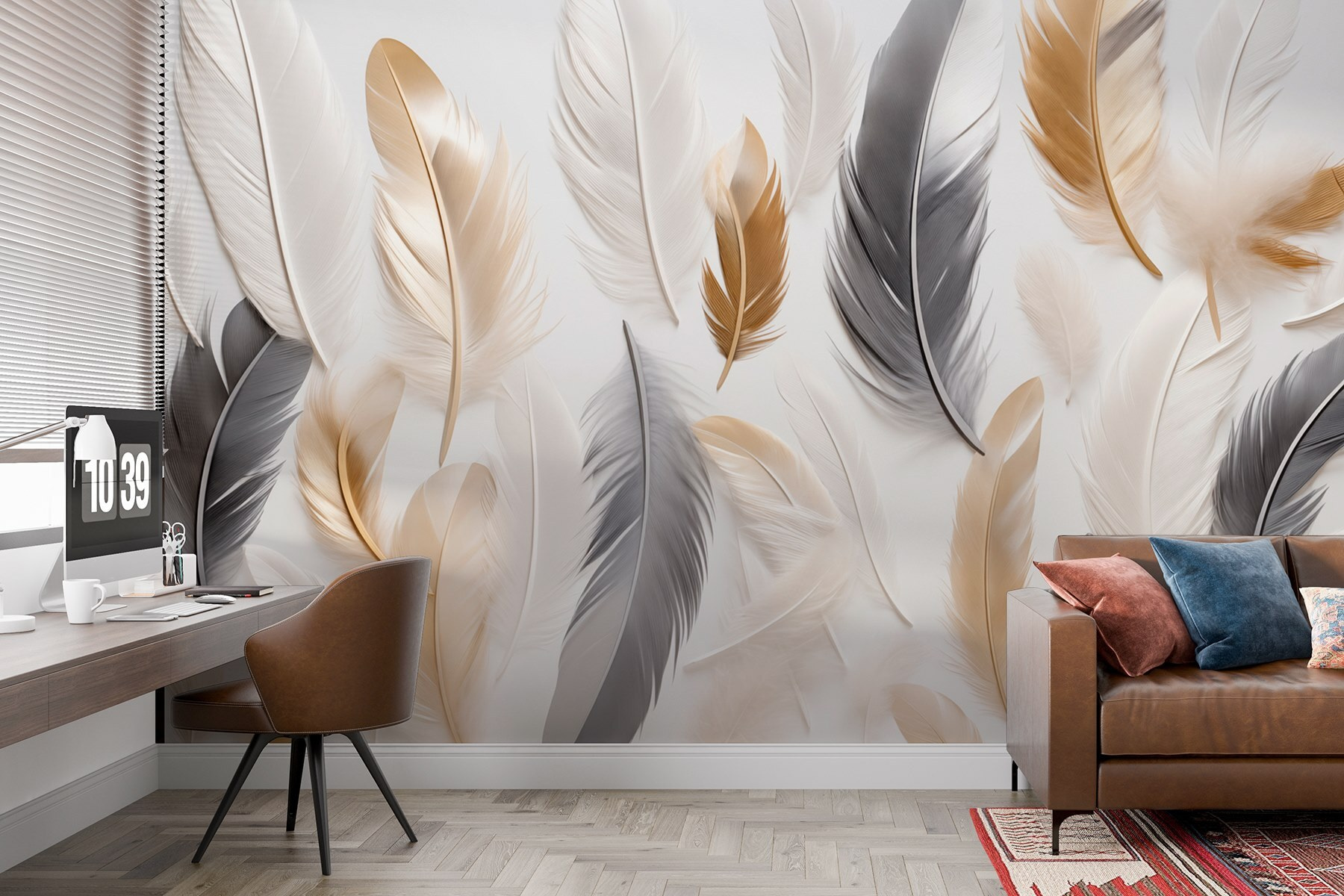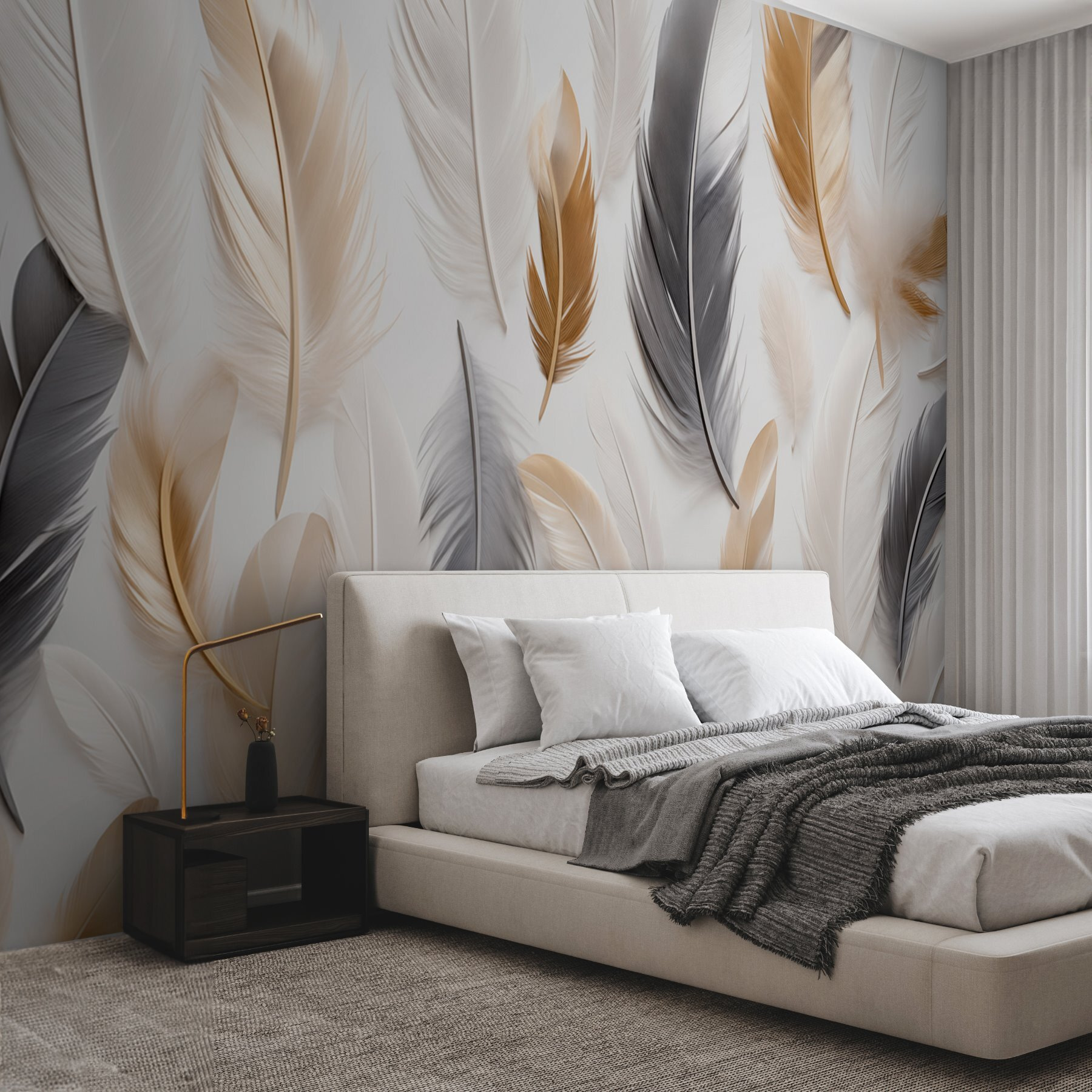 Premeňte akúkoľvek miestnosť pomocou tejto úžasnej nástennej maľby s krásnym usporiadaním pierok na sviežom bielom pozadí. Je to ako vniesť bezstarostnú, ľahkú atmosféru priamo do vášho domova. Predstavte si, že sa každé ráno prebúdzate s týmto elegantným dizajnom, ktorý vám pripomína pokojné dni strávené vonku. Zmes odtieňov pierok dodáva pocit hĺbky – každý z nich akoby mal svoju vlastnú osobnosť a čakal, až si ho niekto všimne. Ideálne pre útulný čitateľský kútik alebo štýlovú vstupnú halu, je to druh umeleckého diela, pri ktorom budú hostia robiť dvojité zábery. Nechajte svoje steny rozprávať príbeh a pozvite do nich teplo a dotyk prírody.