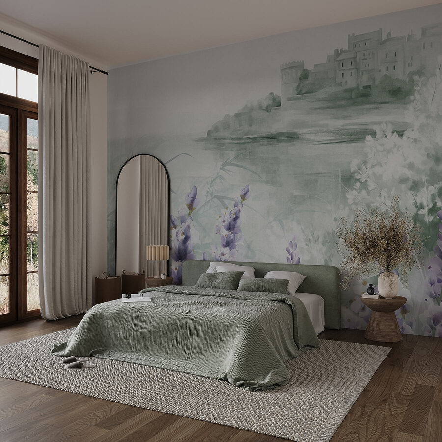 Premeňte akýkoľvek priestor pomocou tejto zasnenej akvarelovej maľby s očarujúcim hradom a jemnými kvetmi. Predstavte si, že vstúpite do miestnosti, v ktorej sa budete cítiť ako na pokojnom úteku, kde sa jemné odtiene levandule a nežnej zelene spájajú a vytvárajú pokojnú atmosféru. Akoby steny šepkali poéziu a vyzývali k snívaniu o dobrodružstvách v čarovnej záhrade. Táto nástenná maľba vnesie do interiéru nádych prírodnej krásy, či už rozžiari útulný čitateľský kútik, alebo dodá rodinnej izbe šmrnc. Je to umenie, ktoré pôsobí živo, vyvoláva radosť a kreativitu a možno vám vyčarí úsmev na tvári vždy, keď pôjdete okolo. Kto by to bol povedal, že dekorácie môžu byť ako závan čerstvého vzduchu?