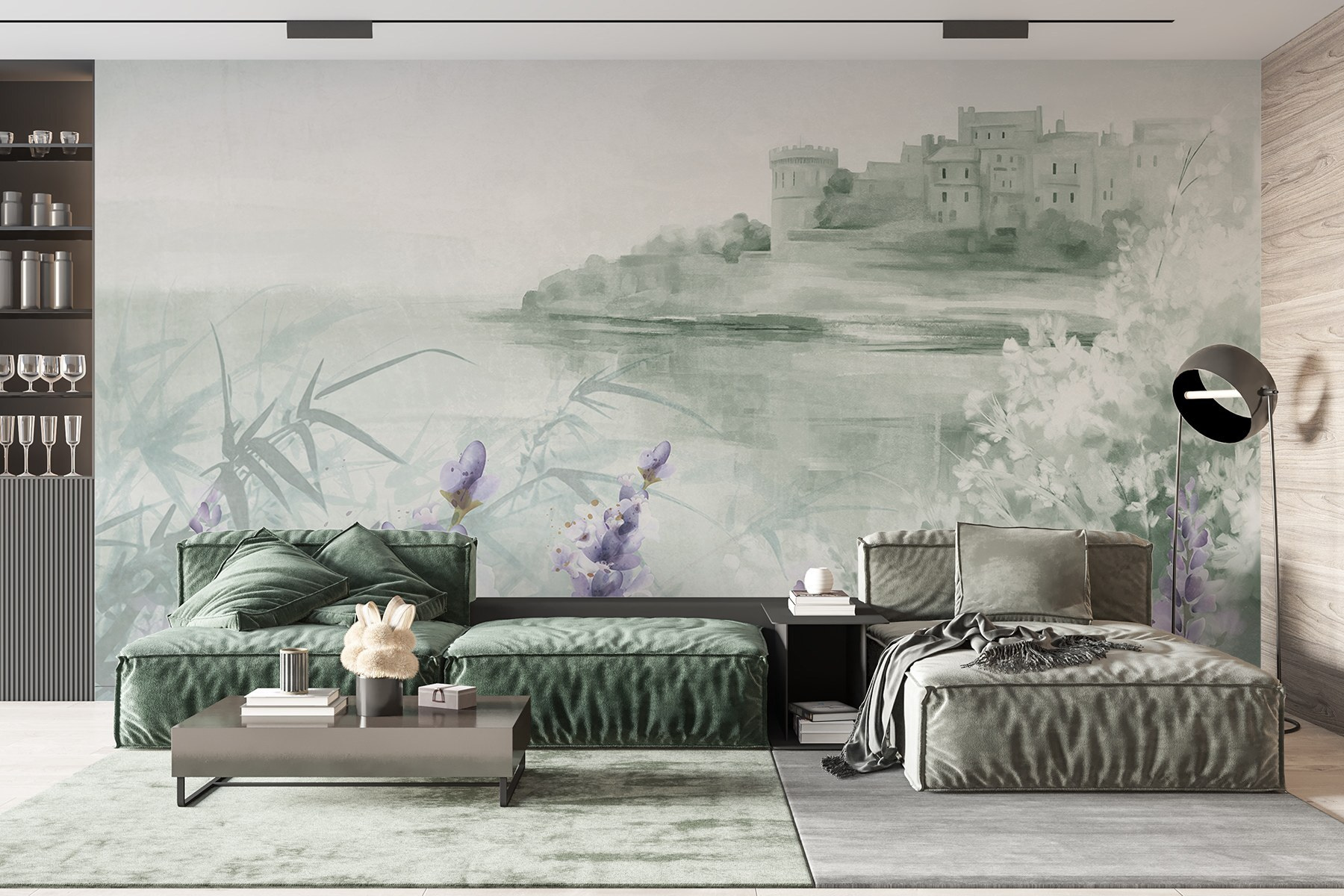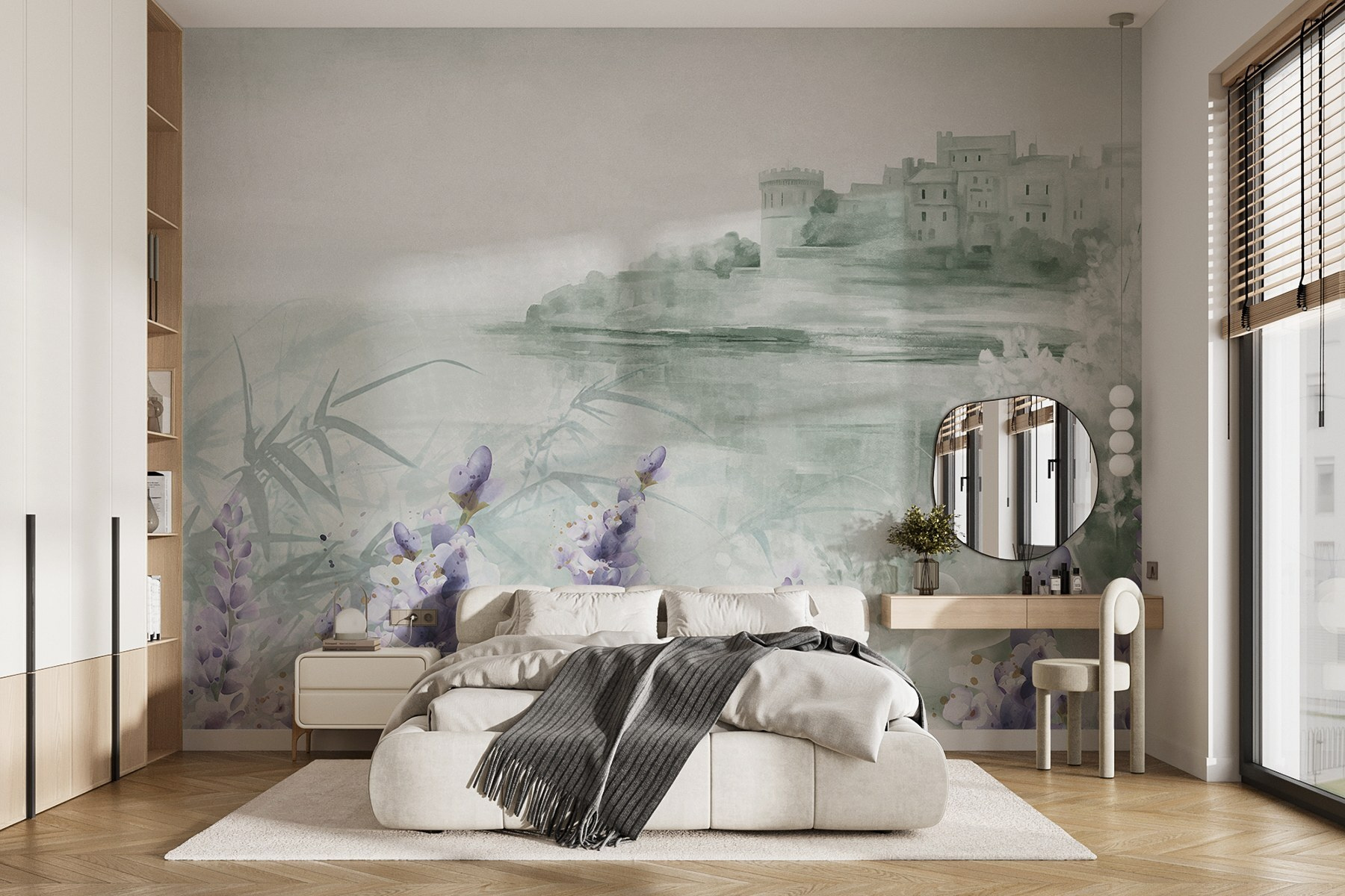 Premeňte akýkoľvek priestor pomocou tejto zasnenej akvarelovej maľby s očarujúcim hradom a jemnými kvetmi. Predstavte si, že vstúpite do miestnosti, v ktorej sa budete cítiť ako na pokojnom úteku, kde sa jemné odtiene levandule a nežnej zelene spájajú a vytvárajú pokojnú atmosféru. Akoby steny šepkali poéziu a vyzývali k snívaniu o dobrodružstvách v čarovnej záhrade. Táto nástenná maľba vnesie do interiéru nádych prírodnej krásy, či už rozžiari útulný čitateľský kútik, alebo dodá rodinnej izbe šmrnc. Je to umenie, ktoré pôsobí živo, vyvoláva radosť a kreativitu a možno vám vyčarí úsmev na tvári vždy, keď pôjdete okolo. Kto by to bol povedal, že dekorácie môžu byť ako závan čerstvého vzduchu?