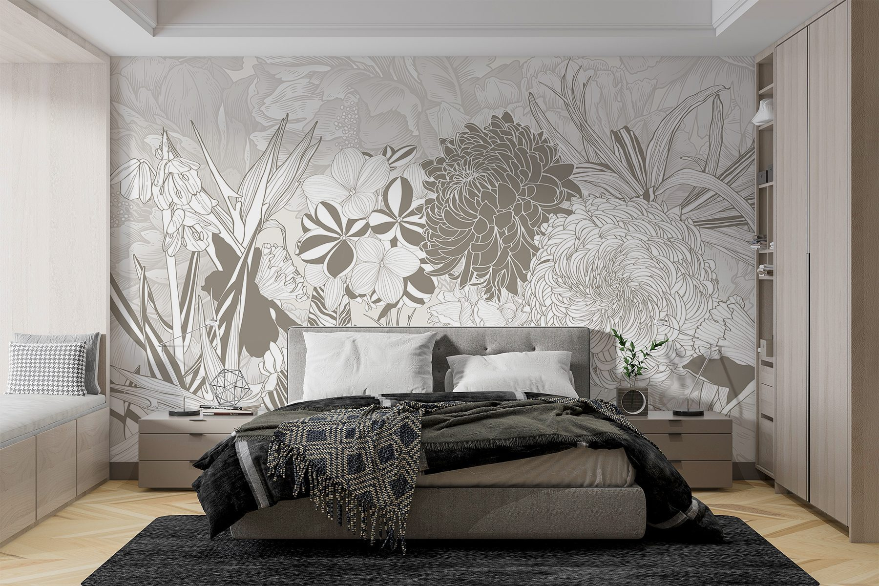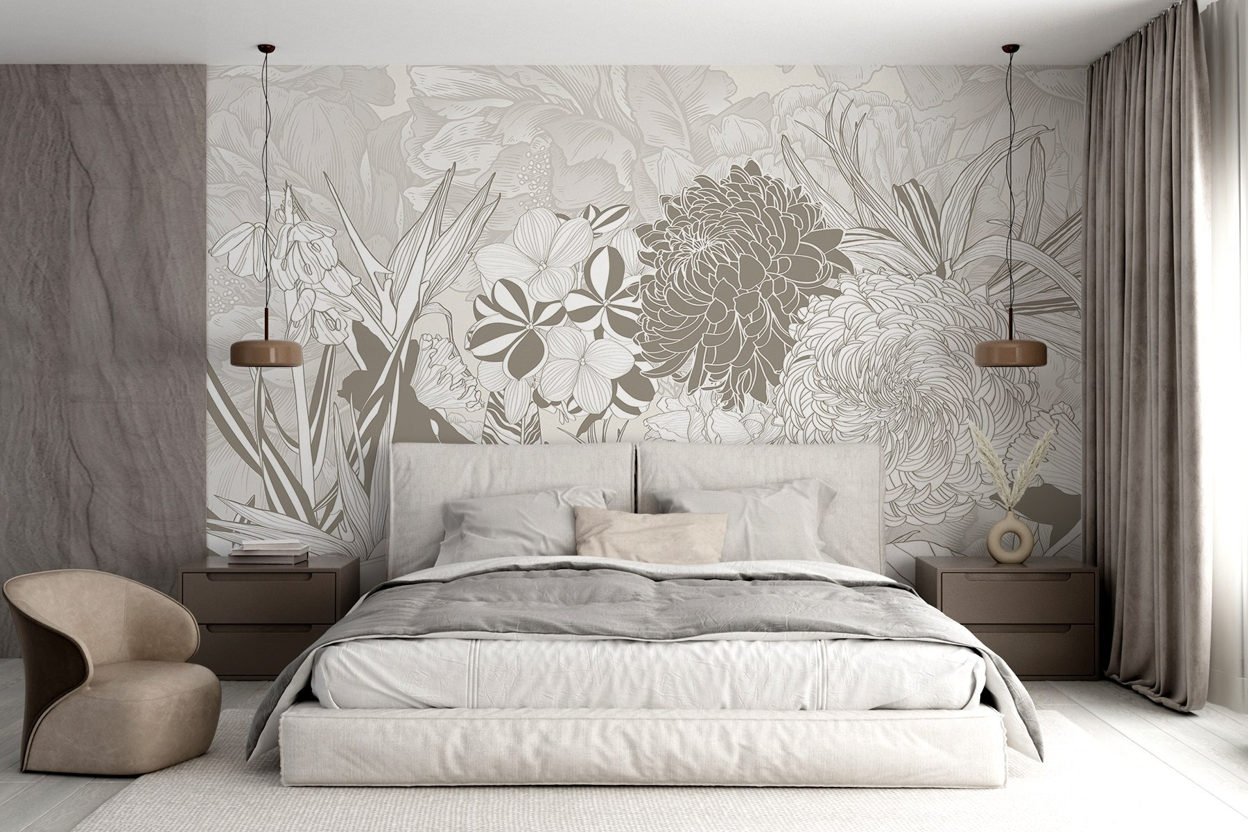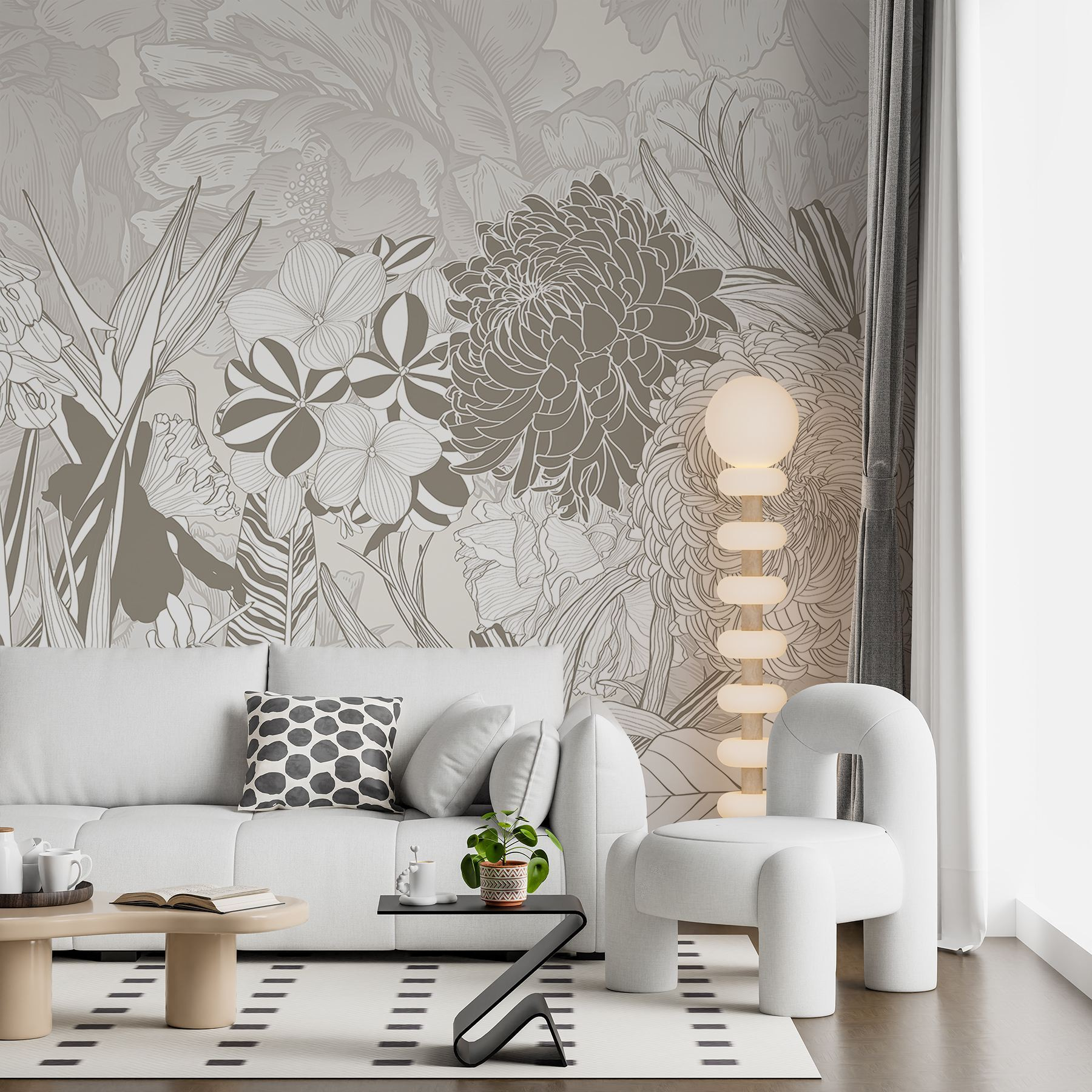 Predstavte si, že popíjate kávu obklopení kvetmi, vďaka ktorým sa každý pohľad podobá na mini únik do prírody. Je ideálny do útulného čitateľského kútika alebo aj do živej obývačky, kde vzbudzuje radosť bez toho, aby zahltil zmysly. Priatelia sa budú zastavovať a obdivovať, možno aj trochu závidieť! Premeňte túto stenu a nechajte krásu rozkvitnúť vo svojom domove.