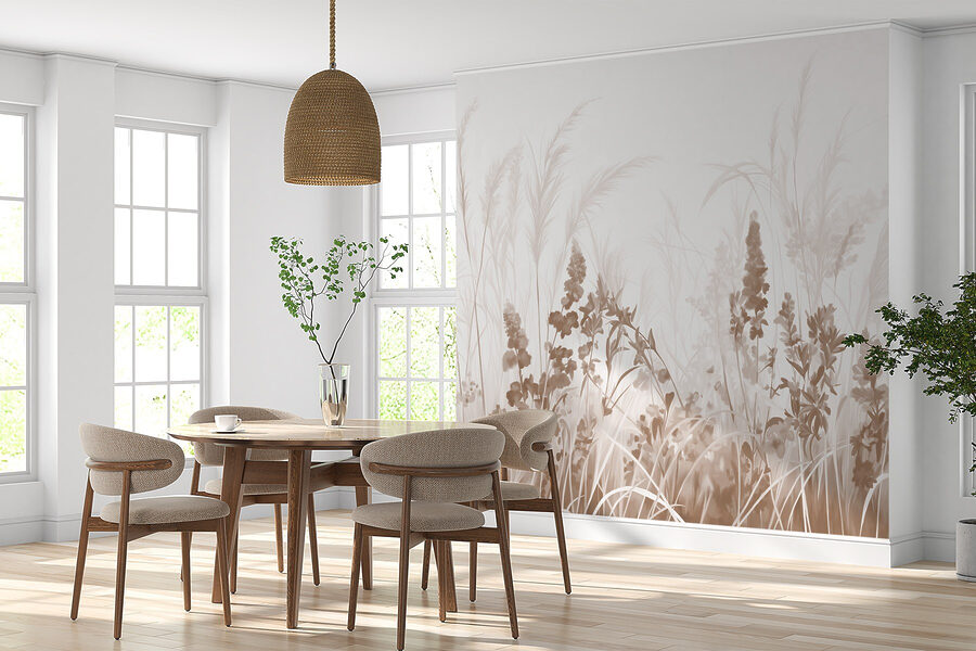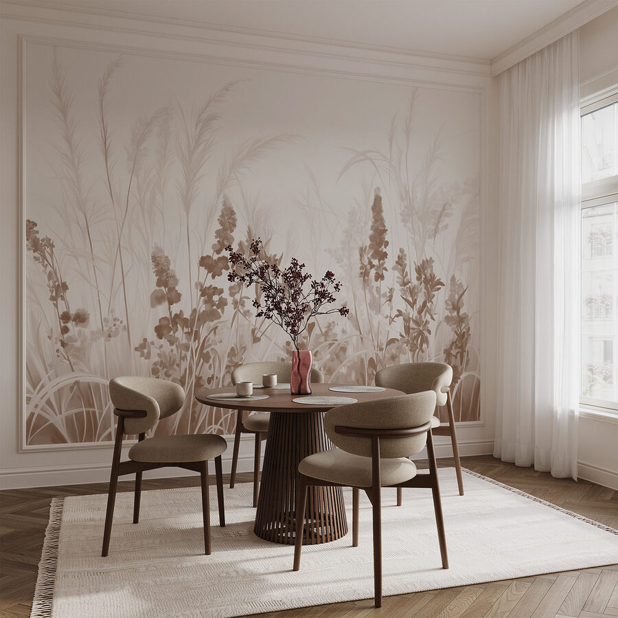 Premeňte každú miestnosť pomocou tejto pokojnej botanickej nástennej maľby, ktorá v jemných odtieňoch prináša krásu prírody do interiéru. Predstavte si, že vstúpite do priestoru, ktorý šepká uvoľnenie ako jemný vánok počas jarného dňa. Kvety a trávy tancujú po stene a vyvolávajú pocit potuliek pokojnou záhradou. Či už je to v obývacej izbe alebo v útulnom čitateľskom kútiku, tento umelecký kúsok dodáva eleganciu bez toho, aby toho povedal príliš veľa. Popíjanie kávy a pokojné chvíle práve dostali vylepšenie. Je to dokonalý spôsob, ako vytvoriť upokojujúcu atmosféru, vďaka ktorej sa každý deň bude cítiť ako mini únik.