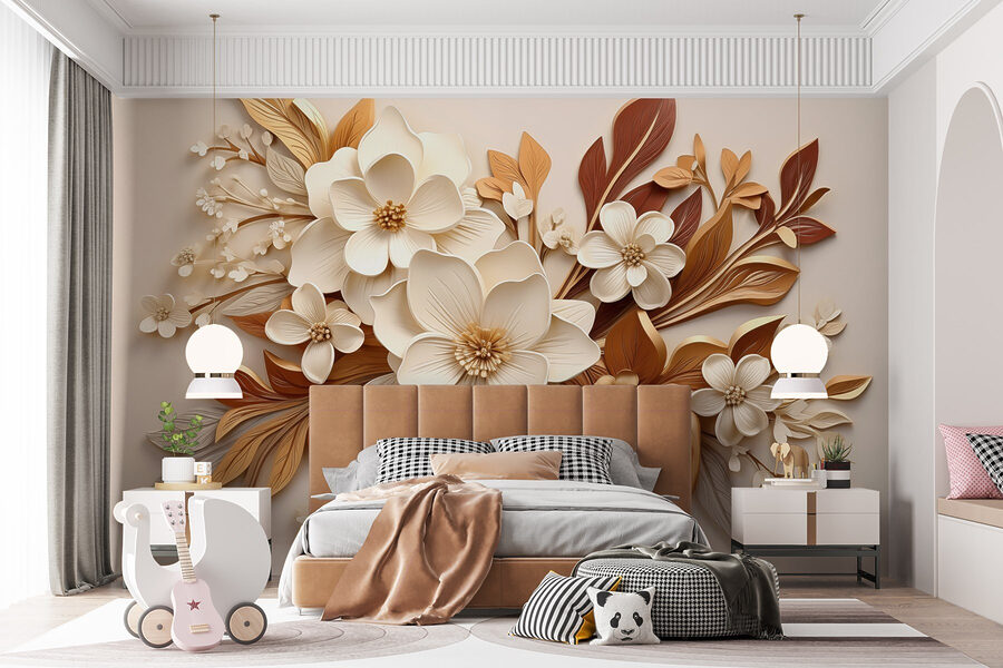 Premeňte akýkoľvek priestor pomocou tejto očarujúcej nástennej maľby s nádhernou kombináciou bielych a hnedých kvetov. Predstavte si, že vstúpite do miestnosti, ktorá sa viac podobá na slnkom zaliatu záhradu než len na steny. Dizajn našepkáva teplo a útulné vibrácie – ideálny pre zákutia, kde sa človek môže schúliť s dobrou knihou alebo popíjať kávu pri snívaní. Každý okvetný lístok a list spolu pekne ladia a vytvárajú jemný ústredný bod, ktorý nabáda ku konverzácii. Vážne, viete si predstaviť svojich hostí, ako ho obdivujú? Je to ako mať kúsok prírody priamo vo svojom dome, bez peľu.