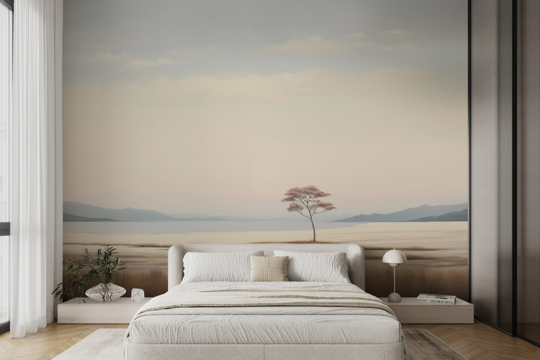 Pomocou nástennej maľby “Strom v poli” premeníte každú stenu na pokojné útočisko. Predstavte si to: pokojná krajina, kde sa na pozadí jemnej pastelovej oblohy týči jediný strom. Je to ako nežné objatie pre váš priestor. Predstavte si, že popíjate čaj a pozeráte na túto upokojujúcu scénu; možno vás inšpiruje k chvíľke zenu. Ideálny do obývačky alebo útulného zákutia, pozýva prírodu priamo do vášho domova. Navyše vždy, keď sa na ňu niekto opýta, môžete sa podeliť o to, ako sa pri nej cítite – akoby ste boli v pokojnom ústraní, aj keď vaša mačka stále pokukuje po skrinke s občerstvením.