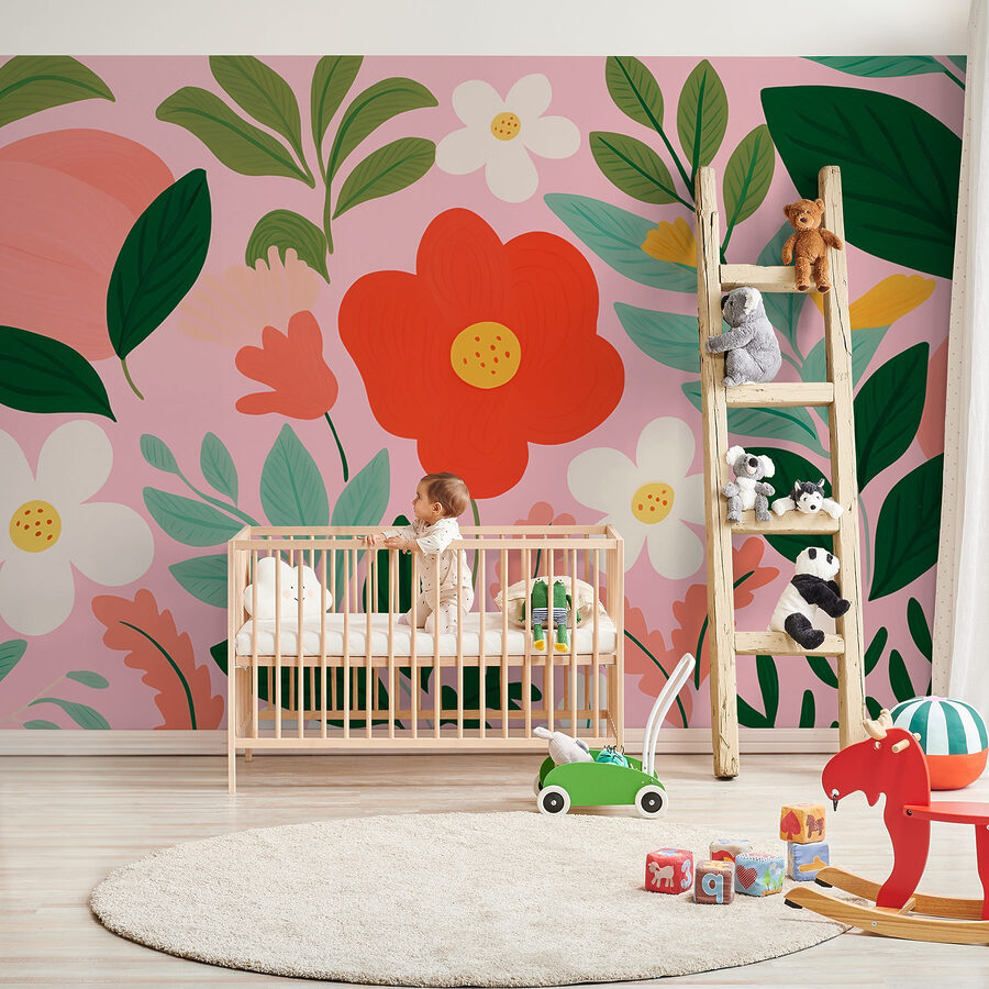 S touto živou nástennou maľbou kvetov a listov premeníte každú miestnosť na rozkvitnutý raj. Veselá paleta tancuje so žiarivou červenou, jemnou ružovou a sviežou zelenou, vďaka čomu sa budete cítiť ako na jar po celý rok. Predstavte si, že ležíte doma, obklopení týmto prívalom prírody, a zrazu sa prenesiete do slnečnej záhrady – plnej rozmarných kvetov, ktoré akoby vás rozveseľovali. Táto nástenná maľba je ideálna na oživenie obývačky alebo vytvorenie útulného čitateľského kútika, je ako objatie od prírody. Len si to predstavte: popíjate kávu, obdivujete veselé vibrácie a možno snívate o ďalšom dobrodružstve v prírode.