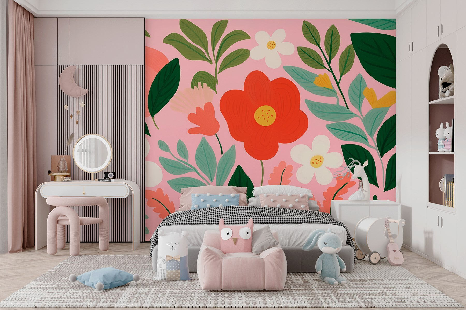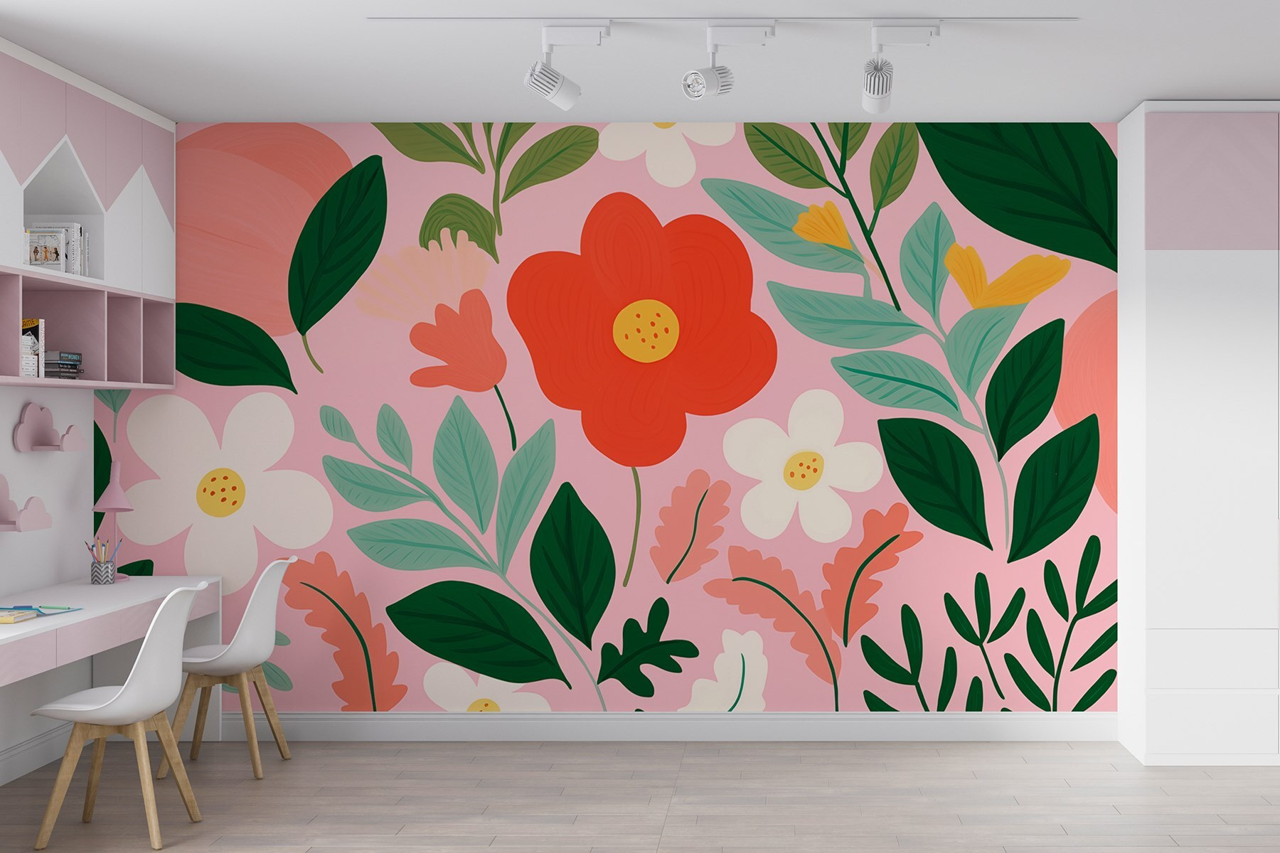 S touto živou nástennou maľbou kvetov a listov premeníte každú miestnosť na rozkvitnutý raj. Veselá paleta tancuje so žiarivou červenou, jemnou ružovou a sviežou zelenou, vďaka čomu sa budete cítiť ako na jar po celý rok. Predstavte si, že ležíte doma, obklopení týmto prívalom prírody, a zrazu sa prenesiete do slnečnej záhrady – plnej rozmarných kvetov, ktoré akoby vás rozveseľovali. Táto nástenná maľba je ideálna na oživenie obývačky alebo vytvorenie útulného čitateľského kútika, je ako objatie od prírody. Len si to predstavte: popíjate kávu, obdivujete veselé vibrácie a možno snívate o ďalšom dobrodružstve v prírode.