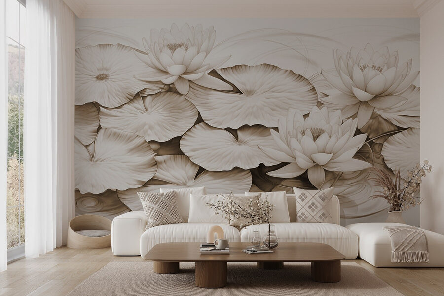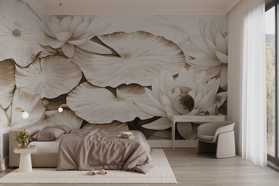 Premeňte každú miestnosť pomocou tejto očarujúcej nástennej maľby s jemnými leknami a nádhernými leknami. Predstavte si, že vojdete do svojho priestoru a budete mať pocit, že ste sa zatúlali do pokojného rybníka s jemnými odleskami a jemnými vlnami. Je to, akoby pokoj prírody bol len kúsok od steny. Táto nástenná maľba je ideálna pre tých, ktorí túžia po pokojnej atmosfére, a prináša kúsok pokoja – možno aj inšpiráciu na budúce snenie. Jemná, ale výrazná, krásne tancuje so svetlom a vyvoláva útulnú nostalgiu. Perfektný začiatok konverzácie alebo jednoducho pokojné pozadie pre tiché chvíle.