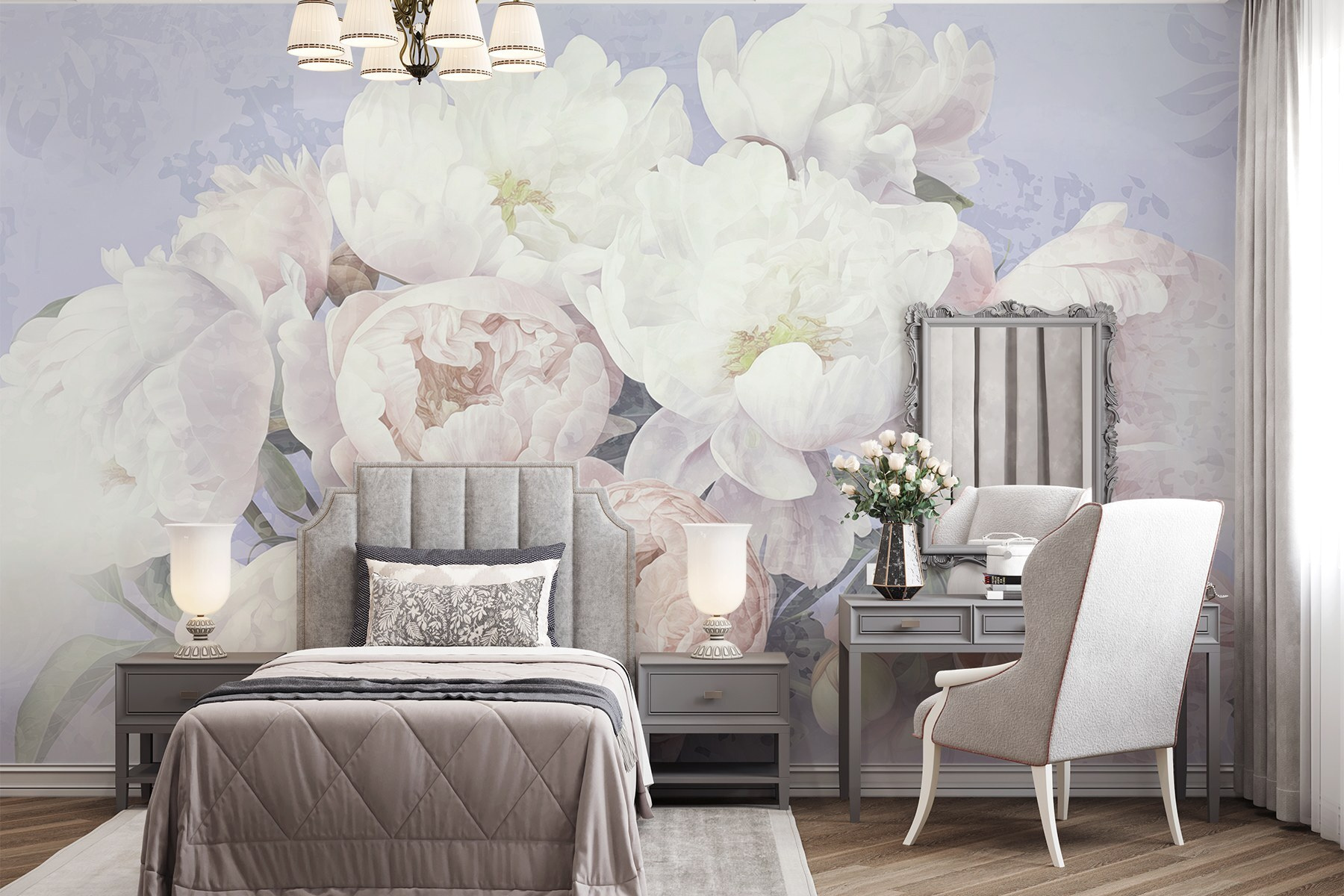 Rozžiarte každý priestor touto nádhernou fototapetou s nádhernou kyticou jemných bielych a ružových kvetov. Predstavte si, že vstúpite do miestnosti, kde tieto pivonky ožijú a naplnia vzduch svojím šarmom – dobre, možno nie skutočnou vôňou, ale dosť blízko! Predstavte si, ako popíjate rannú kávu pri pohľade na tieto kvety a cítite, ako vás zaplavuje nádych pokoja. Táto nástenná maľba je ideálna do útulného zákutia alebo dokonca do živej obývačky a určite vyvolá úsmevy a komplimenty. Je to ako mať tajnú záhradu priamo na stene, bez zalievania a otravného hmyzu! Kto by to nechcel?
