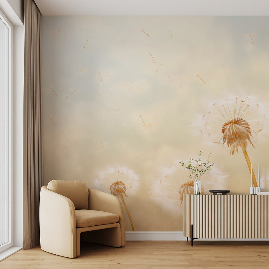 Premeňte svoj priestor pomocou očarujúcej nástennej maľby “Púpavy vejúce vo vetre”. Táto nástenná maľba nie je len dekoráciou; nesie v sebe šepot bezstarostných dní strávených fúkaním semienok púpavy do vetra. Predstavte si, ako jemné farby rozpaľujú pocit pokoja, akoby sa do miestnosti rozlievalo teplé slnečné svetlo. Každá rozmarná púpava unášaná vzduchom akoby pozývala na myšlienky o snoch a želaniach. Je ideálny do útulnej obývačky alebo pokojnej spálne, kde dodá nádych prírody bez nutnosti údržby. Nechajte svoje steny rozprávať príbeh, ktorý upokojuje myseľ a povznáša ducha, a kto vie? Možno to inšpiruje trochu rozmarnosti vo vašej každodennej rutine. Pretože naozaj, kto by sa nechcel prebúdzať s pocitom, že je o niečo ľahší?