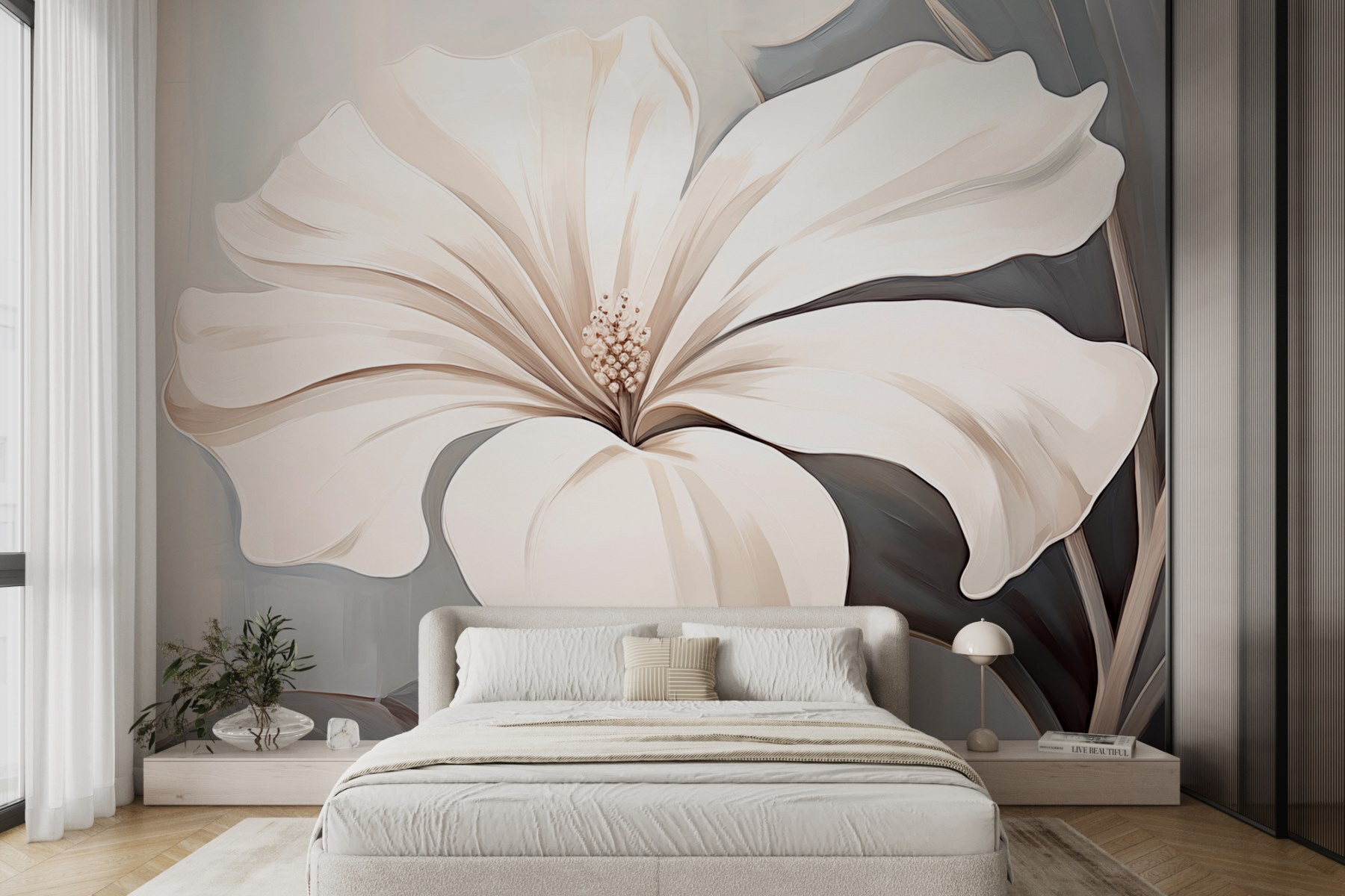 Premeňte akýkoľvek priestor pomocou tejto úžasnej nástennej maľby s krásnym bielym kvetom na upokojujúcom sivom pozadí. Je to ako závan čerstvého vzduchu pre vaše steny, ktorý do vášho domova pozýva pokojné vibrácie. Predstavte si, ako sedíte vo svojom obľúbenom kútiku s teplým nápojom v ruke a táto fototapeta vám dodáva nádych elegancie prírody. Perfektne sa hodí do útulnej obývačky alebo pokojnej spálne, pôsobí pokojným dojmom bez toho, aby kričala o pozornosť. Je to všetko o tom nenútenom šarme, vďaka ktorému sa hostia okamžite cítia príjemne. A buďme úprimní, kto by nechcel kvetinu, ktorá nikdy nezvädne? Navyše je to skvelý začiatok konverzácie – len počkajte, kým sa začnú hrnúť komplimenty!
