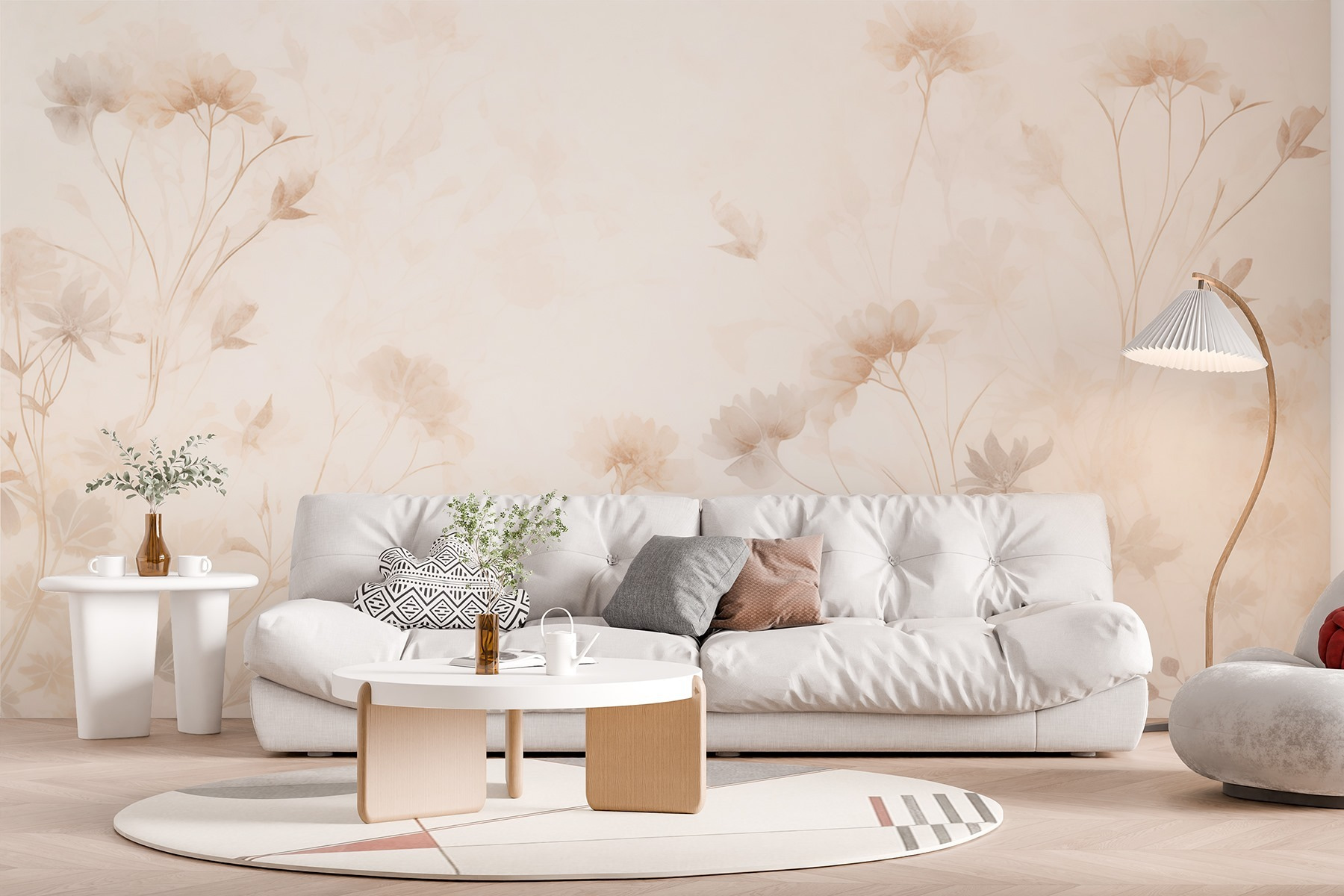Premeňte miestnosť na pokojné útočisko pomocou nástennej maľby “Biely a ružový kvetinový vzor”. Predstavte si, že každý deň vstúpite do krásnej záhrady – jemné okvetné lístky kvitnú v ružových a krémových odtieňoch a šepkajú pokoj. Táto fototapeta vnesie dotyk prírody priamo do vášho obytného priestoru. Je ideálna na oživenie nudnej steny alebo vytvorenie útulného čitateľského kútika. Predstavte si popíjanie čaju obklopené kvetmi, možno aj zatúlaného motýľa, ktorý poletuje okolo. Je to ako jemné objatie pre váš domov, ktoré pozýva na pokoj a teplo a zároveň vyvoláva malé sny. Kto by to nechcel?
