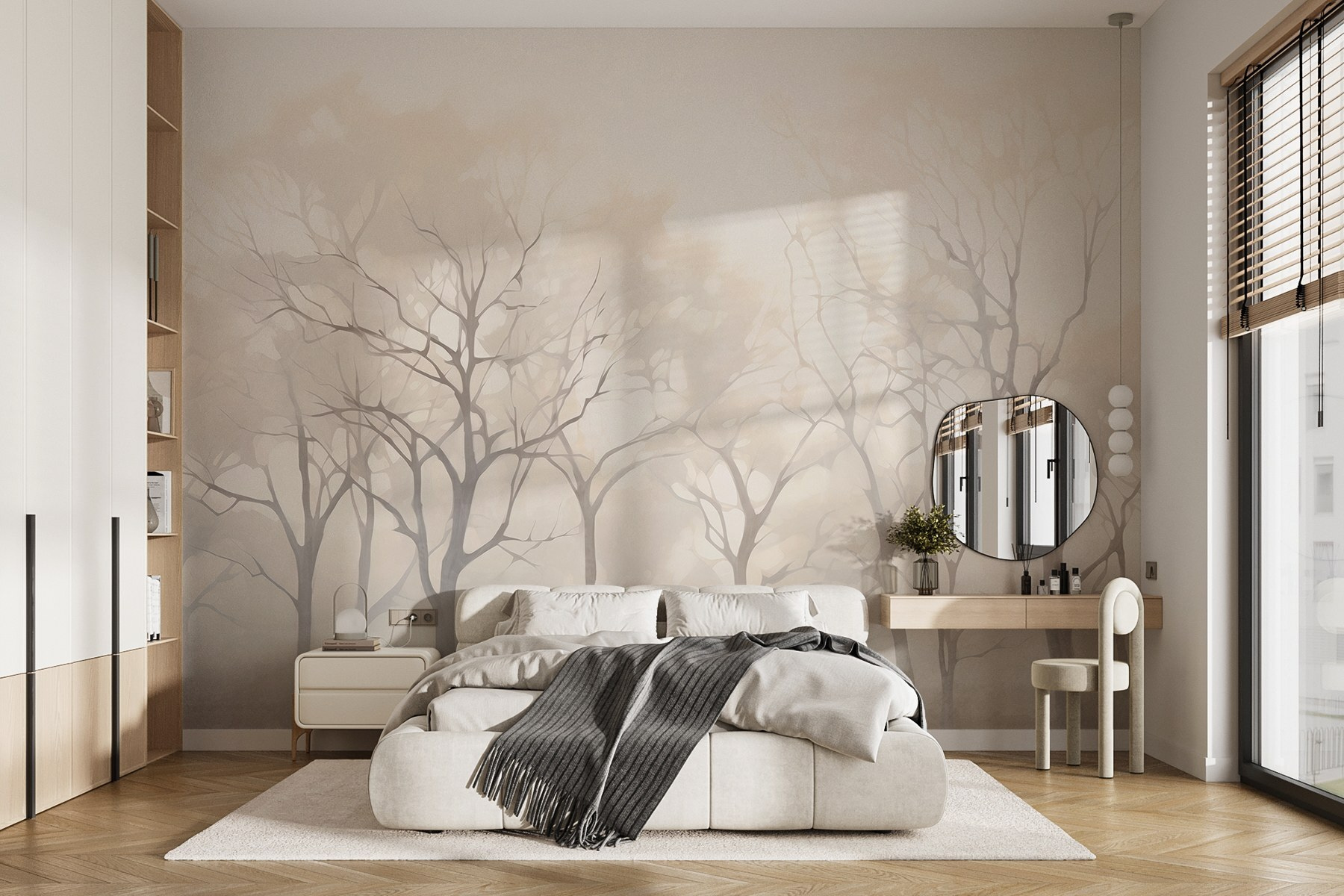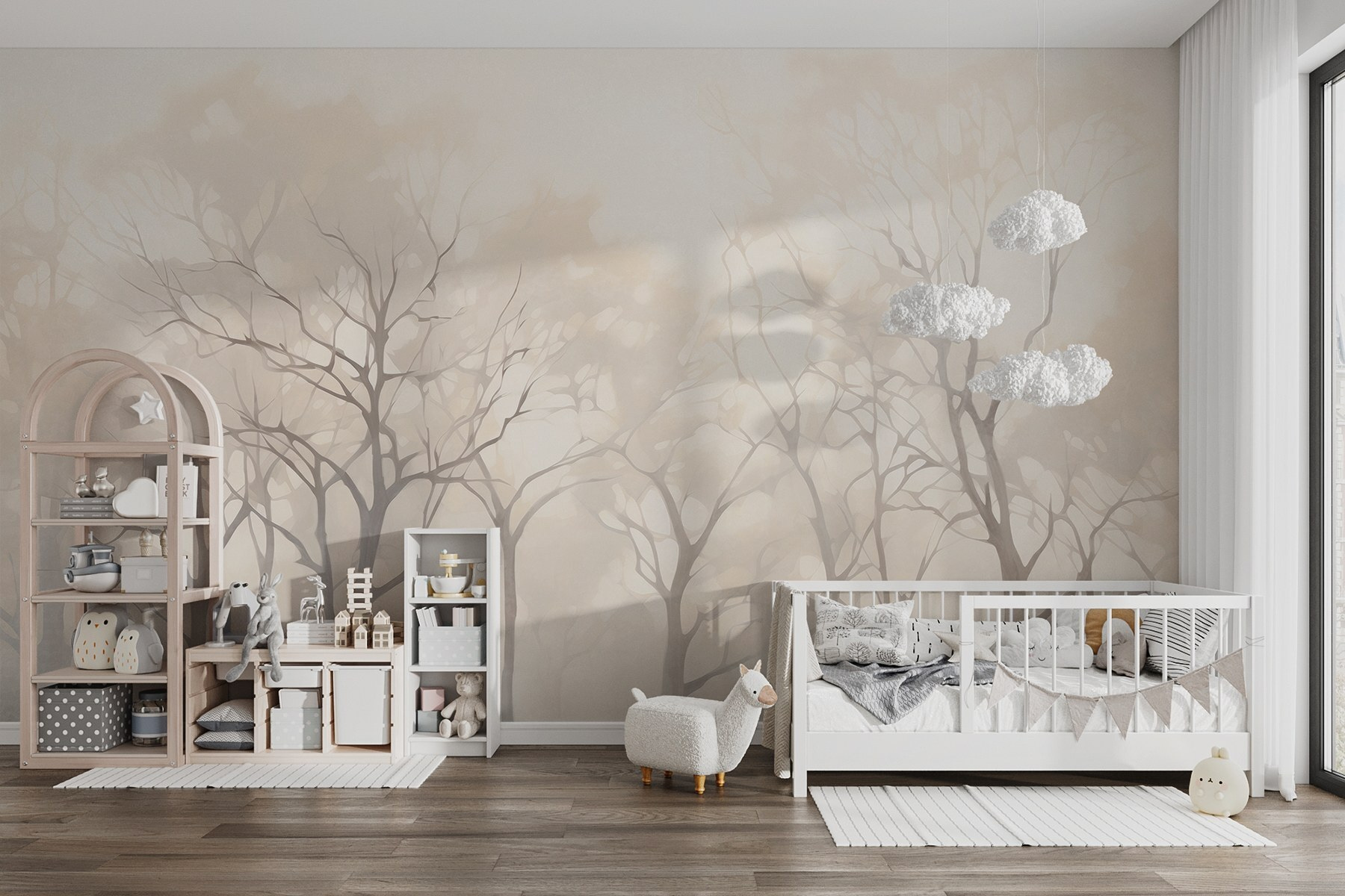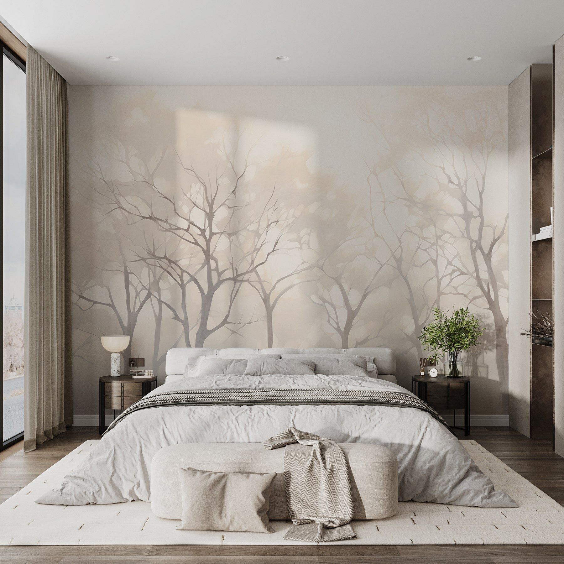 Premeňte svoj priestor pomocou zasnenej nástennej maľby, ktorá zachytáva pokojnú lesnú scénu, kde stromy stoja vysoko uprostred jemnej hmly. Predstavte si, že vstúpite do pokojného okamihu a pocítite jemný šepot prírody, ktorý vás obmýva. Tlmené farby prinášajú pocit pokoja – ideálne pre útulný čitateľský kútik alebo pokojné útočisko v spálni. Je to ako preniesť kúsok vonkajšieho prostredia dovnútra bez špiny a hmyzu! Predstavte si, ako sa strácate v myšlienkach, popíjate kávu a táto nástenná maľba vás zahaľuje do svojho teplého objatia. Nie je to len dekorácia, je to pozvánka na to, aby ste sa nadýchli trochu hlbšie a oddýchli si.