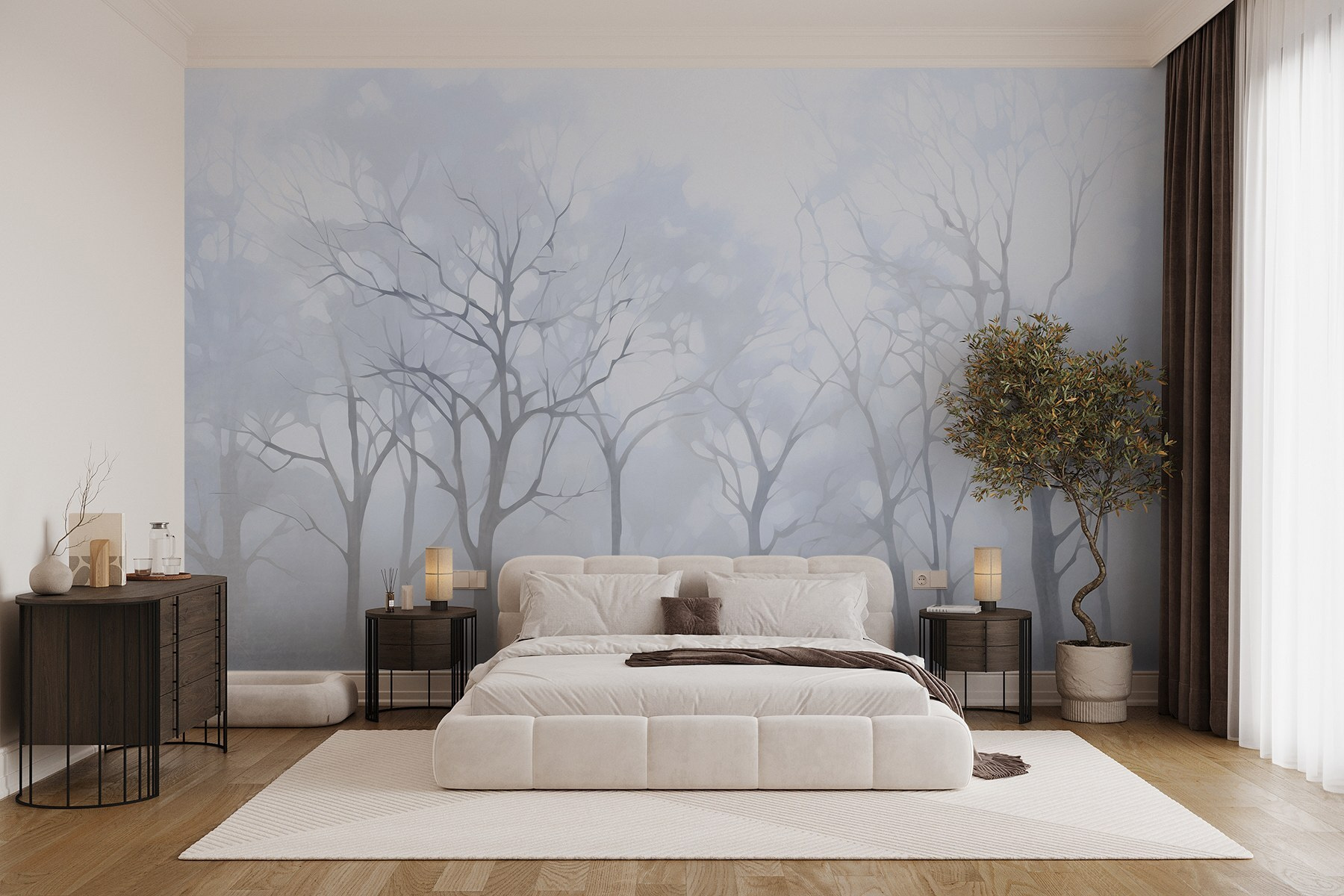 Premeňte svoj priestor na pokojný únik s touto očarujúcou nástennou maľbou so skupinou stromov zahalených v jemnej hmle. Vytvára éterickú atmosféru a pozýva kľud priamo do vášho domova. Predstavte si, že sa každé ráno zobudíte a ako prvý uvidíte hmlistý les, ktorý pôsobí ako jemný šepot prírody. Jemné tóny tejto nástennej maľby vnesú do každej miestnosti pokoj, ideálny na to, keď potrebujete trochu pokoja po hektickom dni. Len si to predstavte – útulný kútik na čítanie, šálka čaju v pare a stratenie sa v tichej kráse tejto zasnenej krajiny. Nie je to len dekorácia; je to každodenná pripomienka, aby ste zhlboka dýchali a prijímali životné okamihy.