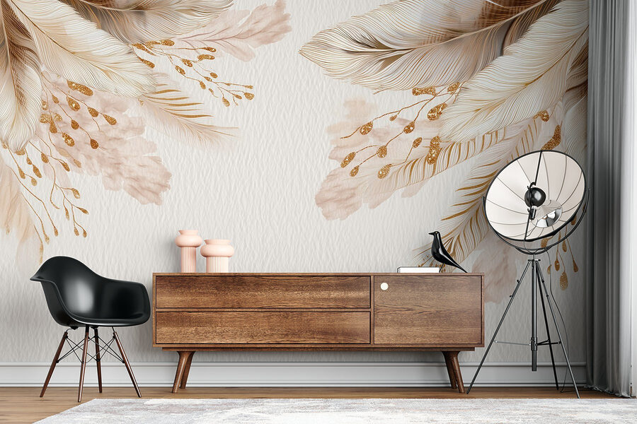 Premeňte akýkoľvek priestor pomocou tejto nástennej maľby, ktorá vnesie jemný dotyk prírody priamo do vášho domova. Jemné pierka a mäkké zemité tóny sa prepletajú a vytvárajú pokojné pozadie – ideálne pre útulné kúty alebo rušné obývacie izby. Predstavte si, ako popíjate rannú kávu pri pohľade na tieto upokojujúce vzory alebo sa utiahnete na pokojné miesto, ktoré je ako závan čerstvého vzduchu. Je to ako mať v interiéri kúsok vonkajšieho prostredia bez chrobákov. Či už ste minimalista alebo milovník prírody v srdci, táto nástenná maľba určite vnesie do vášho života trochu tepla a pokoja. Smelo do toho, nechajte týchto operených priateľov, aby pomohli vašim stenám vyrozprávať príbeh!